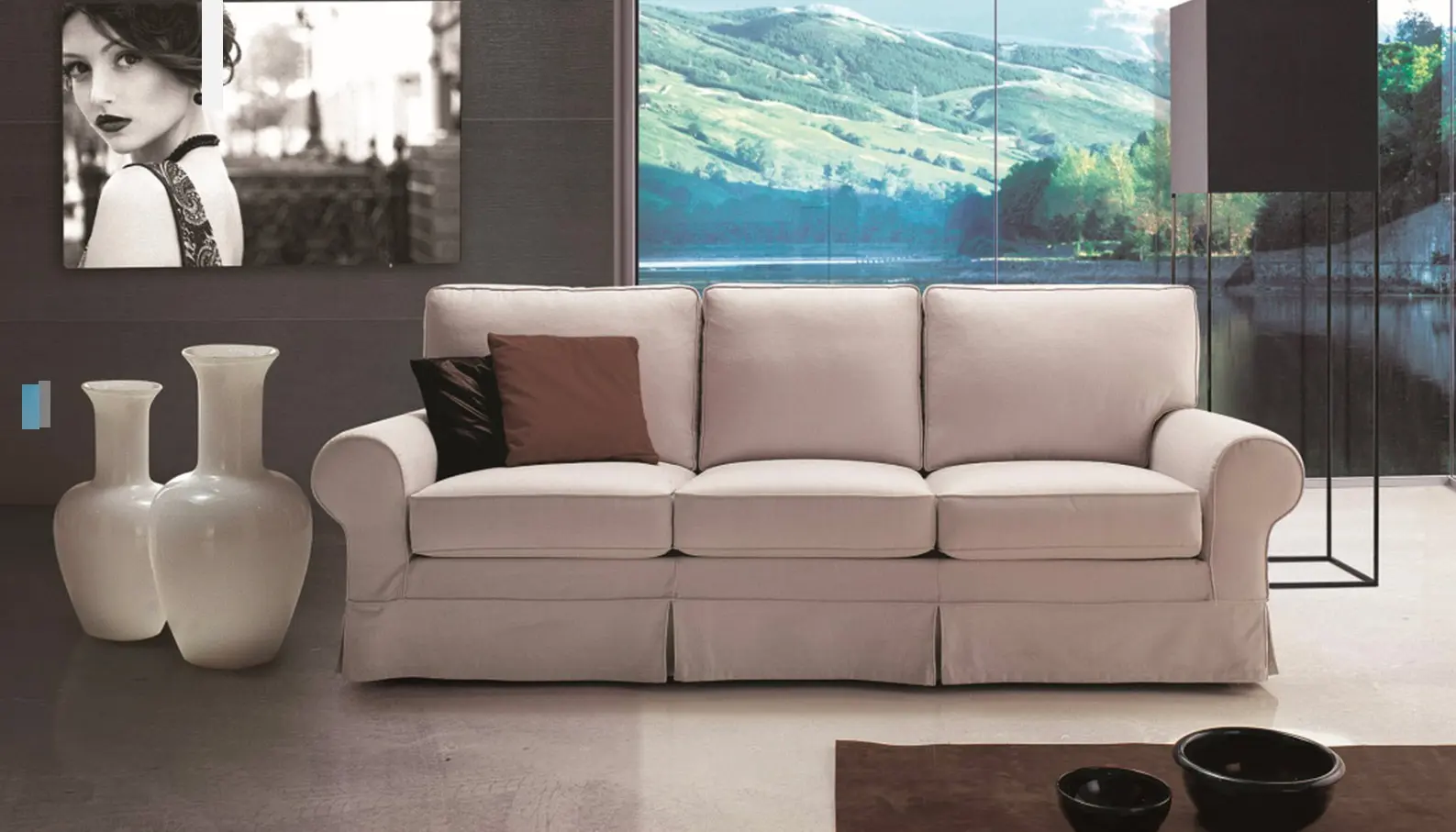 Microfibra sfoderabile. Dal design classico contemporaneo, rivestito in microfibra lavabile color tortora. Perfetto per chi cerca un equilibrio tra eleganza e funzionalità quotidiana.