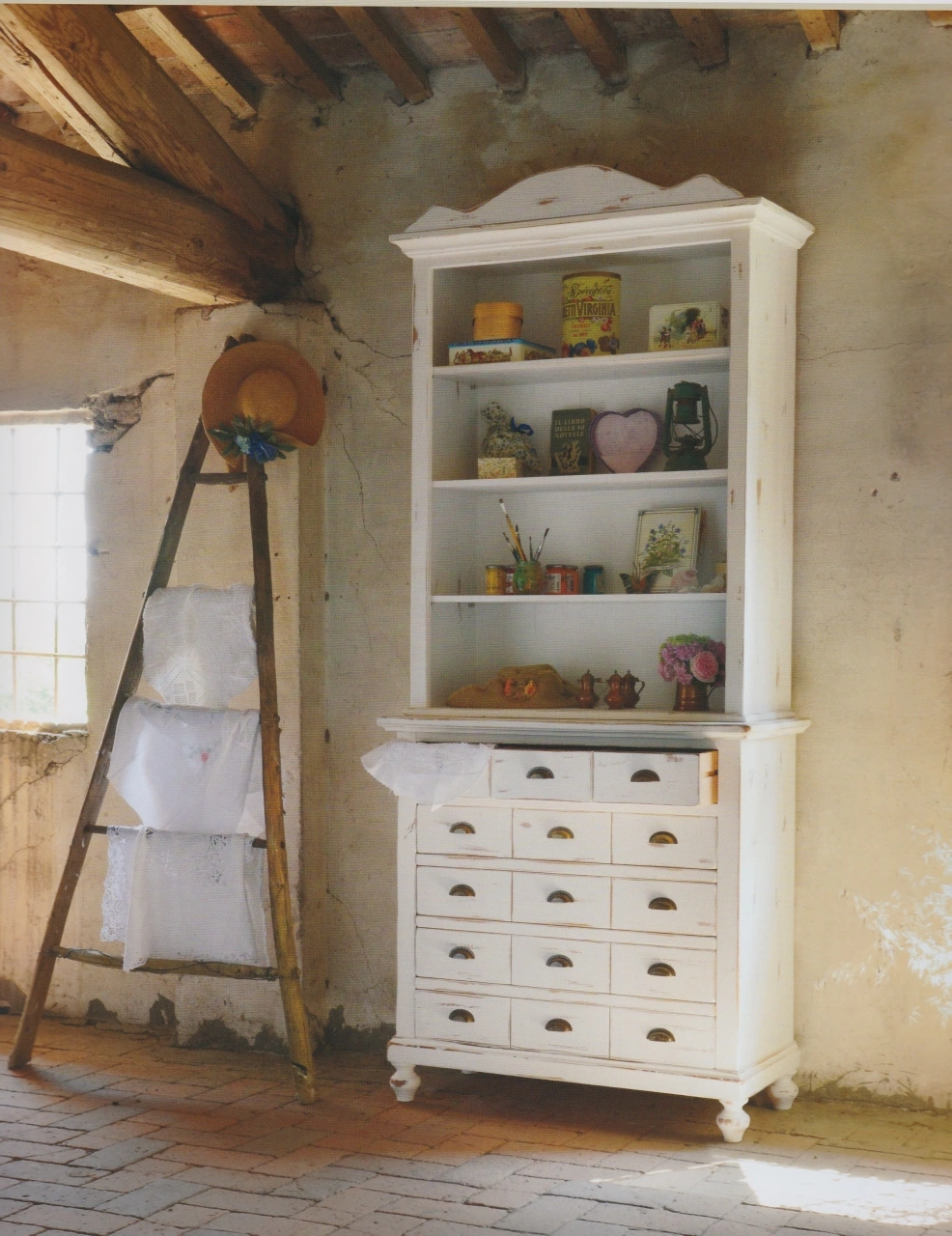 Collezione completa di mobili e complementi in pino per arredamenti rustici.
